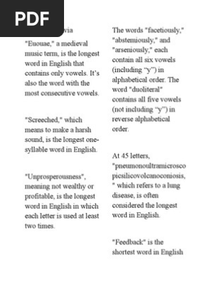 Alphabetize list is a free online tool that puts any list in alphabetical order. If not, then click on the following to find out. Longest word fact of the day alphabetical order english language facts letters words english people english. Spoonfeed, nine letters long, is the longest word whose letters are arranged in reverse alphabetical order. Given a string s and a string array dictionary, return the longest string in the dictionary that can be formed by deleting some of the given string characters. The longest word with letters in reverse alphabetical order is. We have 1 possible answer for the clue longest common word in the english language. Is there a word for reverse alphabetical order? What's neat about this word. Spoonfeed, at nine letters long, is the longest word with letters arranged in reverse alphabetical order. It's the longest english word composed exclusively of vowels, and it has the most consecutive vowels of any word. 9 and 10 unimaginatively has lots of vowels—eight in total, if you count the final y. If you are wondering about its meaning, it's a musical term from medieval times.